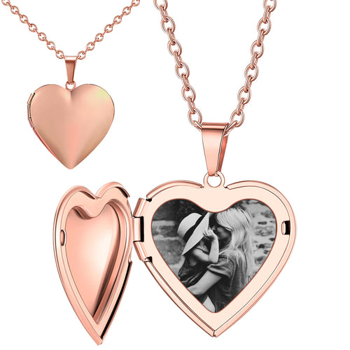 Customized Silver 'Mother and Daughter Forever' Heart Locket Necklace That Holds Pictures - 3/4 Inch X 3/4 Inch -
