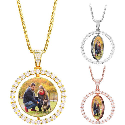 Diamond Dog Tag Photo Pendant Picture Pendant Necklace, Real Solid or Silver -