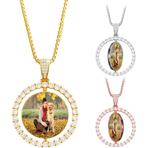 Personalized Rotating Double-Sided Photo Pendant,Hip Hop Necklace,Pet Memorial Necklace,Memory Medallion,Keepsake Jewelry,Sympathy Gift -